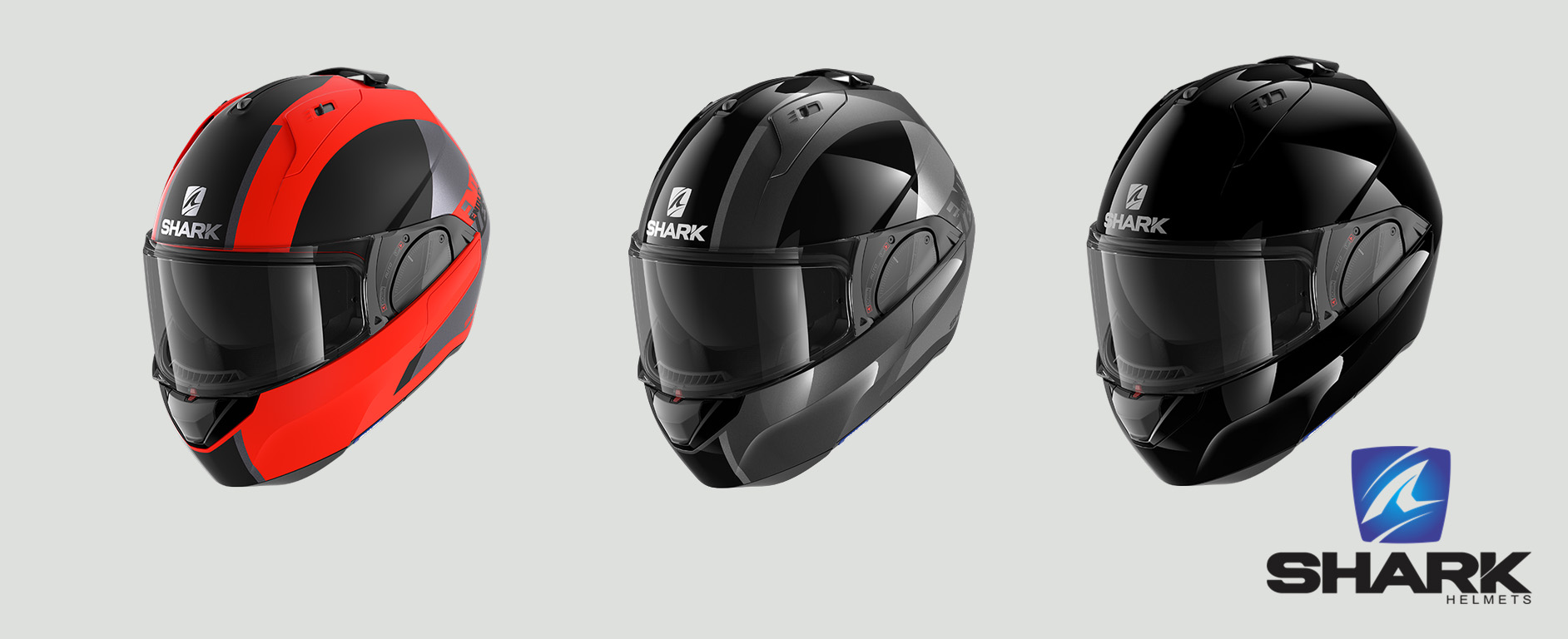 La lineaEVO è infatti la referenza da sempre nel mondo dei modulari; quando SHARK lanciò nel 2007 l’Evoline, questo casco fu il primo al mondo a ottenere la doppia omologazione (P/J).